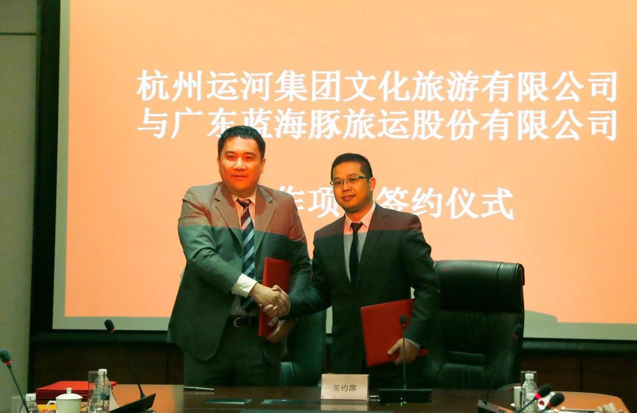 广东蓝海豚旅运股份有限公司总经理田蔚青与运河集团文化旅游有限公司副总经理徐顺雨作为双方代表签署投资协议,钱塘江水上旅游项目正式启动!这意味着双方共同出资成立的杭州钱航游船有限公司即将落地,专注开发钱塘江高端水上旅游。据悉,该项目也被杭州市政府重点关注,得到了各级政府部门的大力支持。