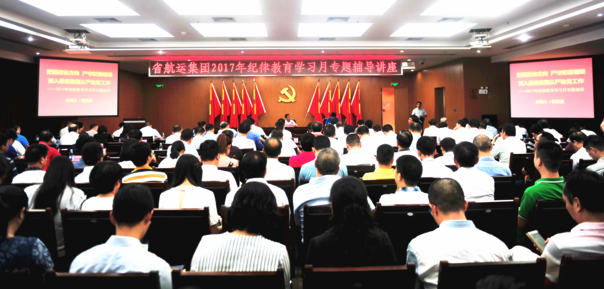 8月18日下午,集团在航运大厦31楼举办了2017年纪律教育学习月专题辅导讲座。集团党委书记、董事长杨显昌以“讲政治、强党性、严纪律、守规矩”为主题,作专题辅导报告。会议由集团党委副书记、纪委书记谢时超主持。