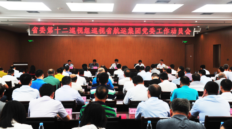 2017年7月13日下午,省委第十二巡视组在航运大厦31楼礼堂召开巡视省航运集团党委工作动员会。省委第十二巡视组组长张培忠作动员讲话,通报巡视任务、工作安排;省委巡视办副主任庞廉就巡视工作提出要求;集团党委书记、董事长杨显昌主持会议并作表态发言。