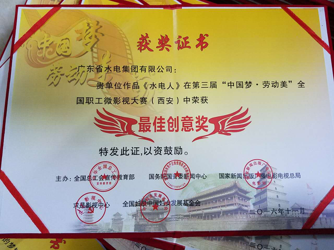 近日,第三届“中国梦·劳动美”全国职工微影视大赛在西安陕西广电大剧院颁奖。水电集团云南投资公司《水电人》微视频荣获本次大赛最佳创意奖。