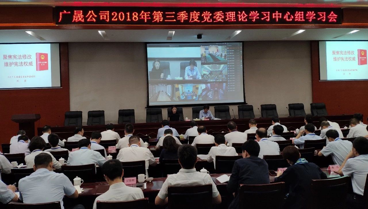 9月26日上午,广晟公司召开2018年第三季度党委理论学习中心组学习会。广东省委党校法学教研部副教授刘丽同志作《聚焦宪法修改维护宪法权威》的专题辅导。公司纪委书记李冬欣主持会议。