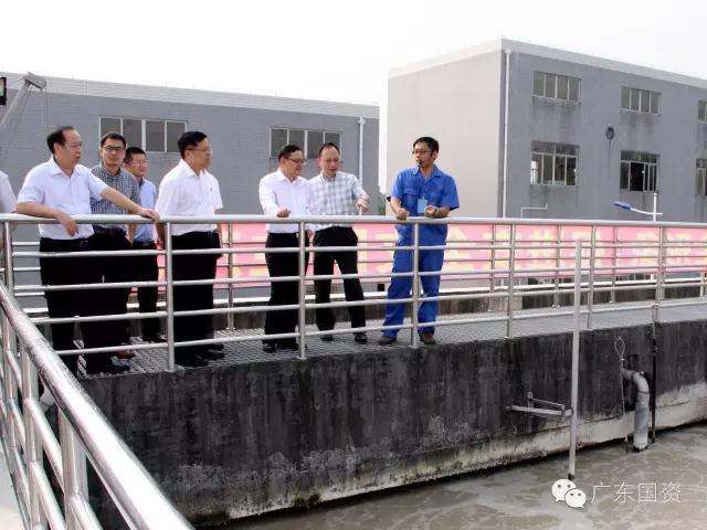 在广业环保集团清远市源潭污水处理厂,李成主任一行视察了污水厂进水口、氧化沟、二沉池、出水口、中控室等生产现场,参观了党员活动室和“两学一做”学习教育及廉政建设宣传栏,听取了污水处理厂生产运营与技术创新情况汇报。