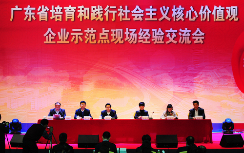 日前,由省委宣传部、省国资委、省直机关工委、省工商联联合召开的全省培育和践行社会主义核心价值观企业示范点现场经验交流会在江门台山市广东省交通集团所属广东西部沿海高速公路营运有限公司举行。省委宣传部副部长蔡伏青,省国资委副主任、党委副书记蔡秀芬等出席会议并为全省16个培育和践行社会主义核心价值观企业示范点授牌。