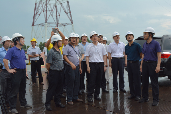 在虎门二桥坭洲水道桥东塔平台、东锚碇施工现场,徐少华一行实地查看了主塔、锚碇等建设情况,听取工程进展汇报。目前,虎门二桥主塔桩基已全部完成,工程建设正全力推进中。