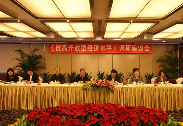 邵宁副主任介绍说,此次重大课题调研的背景,是按照中央政策研究室的分工安排,为党的十八大召开作前期调研和素材准备,意义重大。他对座谈会上大家提出的,如何建立政府和企业对“走出去”的风险分担机制、如何利用我国庞大的外汇储备融资支持企业“走出去”、广东要加强从外向型经济向开放型经济转变等观点和建议表示赞赏,认为值得深入思考。林英副秘书长指出,调研组带来“提高开放型经济水平”的重大课题,对于我国深化改革开放,特别是广东作为全国最大的开放型经济实体谋划下一步工作,显得非常及时、意义重大。